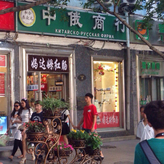 Самое интересное то, что это улица скорее русская, чем китайская. Китайцы решили разместить на этой улице русские кафе, ларьки с русскими сувенирчиками и просто магазины с русскими названиями, но как они их назвали… Мы, всей русской бандой, ходили и хихикали, потому что такие переводы действительно заставляют посмеяться.